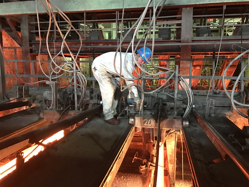 4#連鑄機投產(chǎn)后,因工作需要他來到連鑄,這一干就是8年。在這8年里,他不怕苦不怕累,愛崗敬業(yè),好學(xué)上進。2010年,他由于業(yè)務(wù)能力突出,被任命為臺下組長。彼時4#連鑄機剛投產(chǎn)不久,設(shè)備故障率居高不下,現(xiàn)場存在安全隱患,而他憑借自己干過維修工的特長,經(jīng)常主動整改安全隱患。原來在線搶檢修,崗位工只是配合鉗工,但他從不那樣想,總是親自動手參與搶檢修,許多人問他,“延明,你這樣累死累活的是何苦呢?設(shè)備故障有鉗工處理,歇歇吧。”但他總是笑呵呵的說:“你們歇吧,我不累。”剛生產(chǎn)出來的鑄坯,表面溫度達700—800度,但是他經(jīng)常冒著常人難以接受的溫度在線手工切割鋼坯。每次處理完后他總是大汗淋漓渾身濕透,像是從水里撈出來一樣。