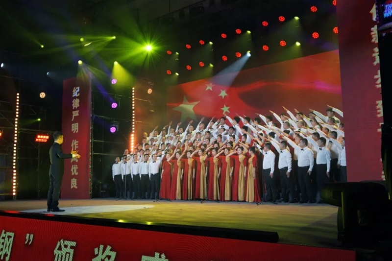 主題鮮明、具有龍鋼特色的文藝節(jié)目與頒獎(jiǎng)環(huán)節(jié)穿插進(jìn)行,為盛典增添了濃厚的文化氛圍。歌曲《鋼鐵脊梁》唱出龍鋼人的責(zé)任擔(dān)當(dāng),歌伴舞《向光而行》傳遞奮進(jìn)力量,音舞快板《我們的答卷》回眸了不平凡的2025年,情景舞蹈《愛的篇章》詮釋了龍鋼人的大愛情懷,情景劇《榮光!致敬煉鋼三十年》展現(xiàn)了煉鋼三十年的奮斗歷程和文化傳承,配樂(lè)詩(shī)朗誦《“四維龍鋼”耀光芒》深情回望龍鋼人逐夢(mèng)“四維龍鋼”的十三年征程;歌舞《讓世界充滿愛》傳遞了十里鋼城的感動(dòng)力量;歌曲聯(lián)唱《龍鋼之歌》《擁抱太陽(yáng)》《祖國(guó)不會(huì)忘記》以磅礴氣勢(shì)收尾,唱出了全體龍鋼人的初心與信仰。